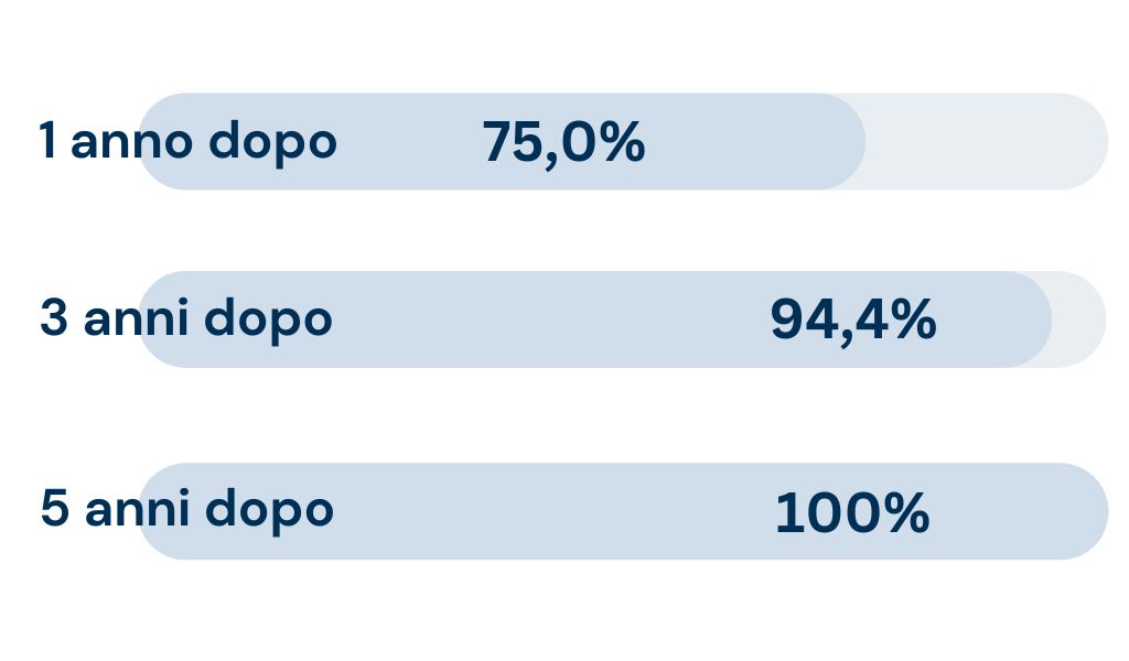 Le percentuali relative agli sbocchi occupazionali si riferiscono ai laureati del 2023 (se a 1 anno dalla laurea), del 2021 (se a 3 anni dalla laurea) e del 2019 (se a 5 anni).