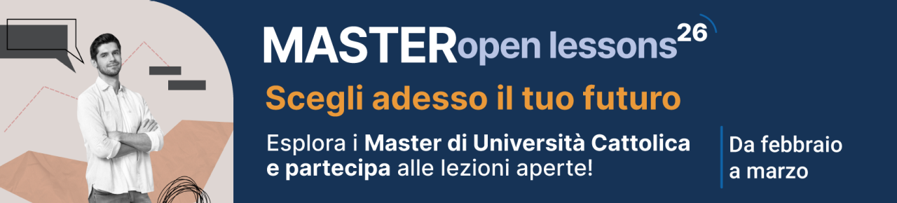 Da febbraio a marzo 2026 vieni a conoscere da vicino l'offerta formativa dei Master universitari di primo e secondo livello, attraverso lezioni aperte dei percorsi.